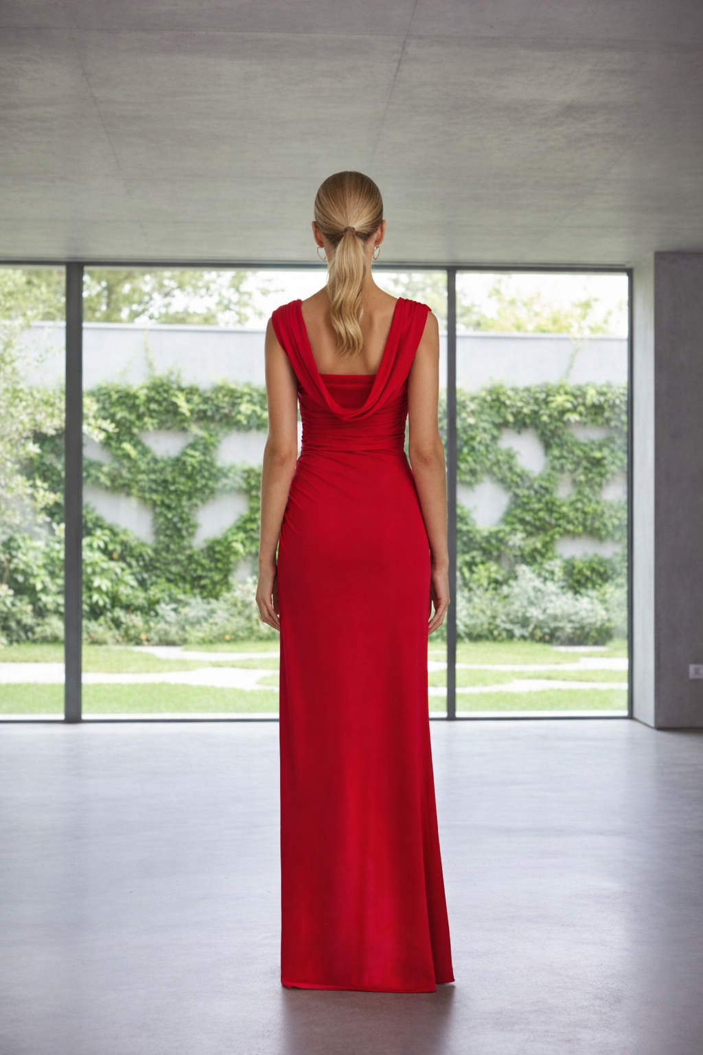 Vestido largo de crepé en punto, con caída fluida y silueta entallada que realza la figura. Su escote drapeado, espalda elegante y abertura lateral aportan movimiento y sofisticación, convirtiéndolo en una pieza ideal para ocasiones especiales y looks de noche llenos de carácter.